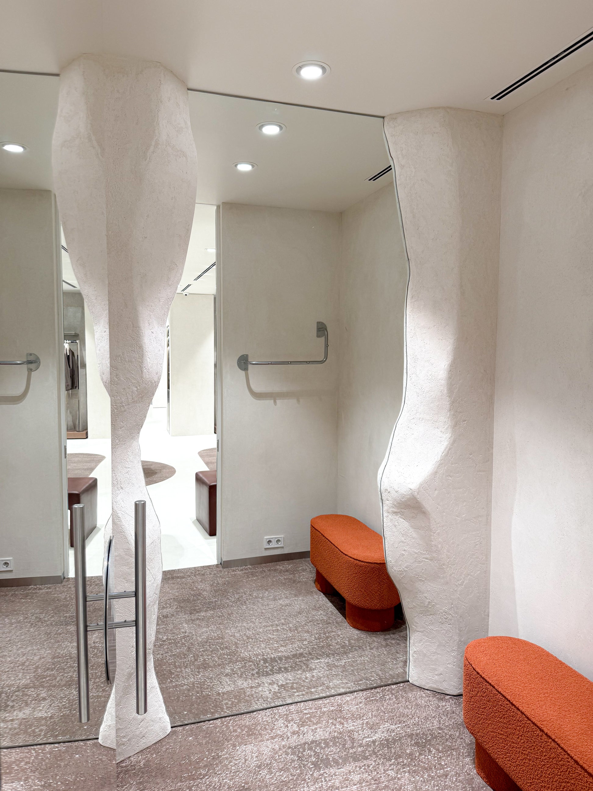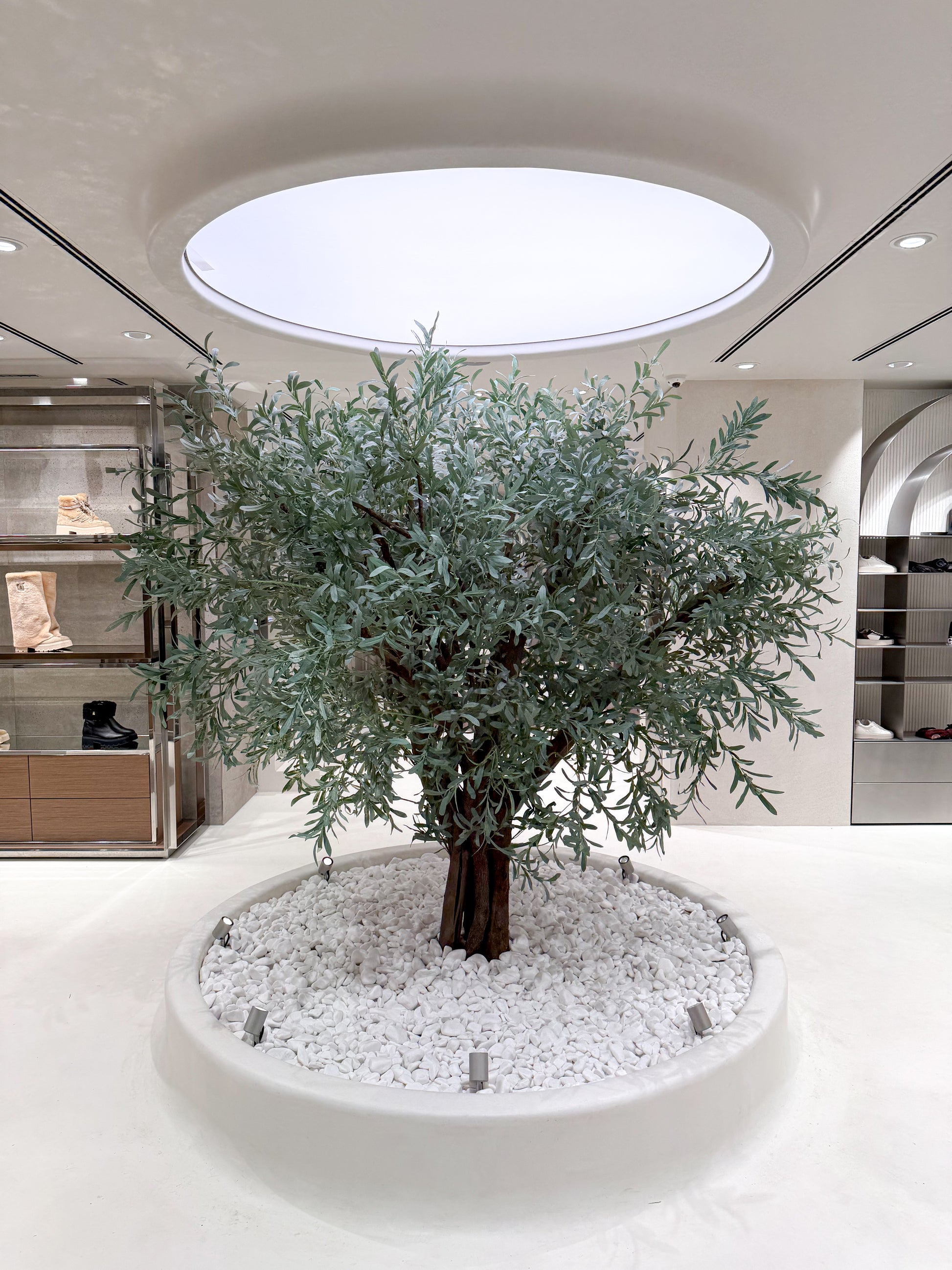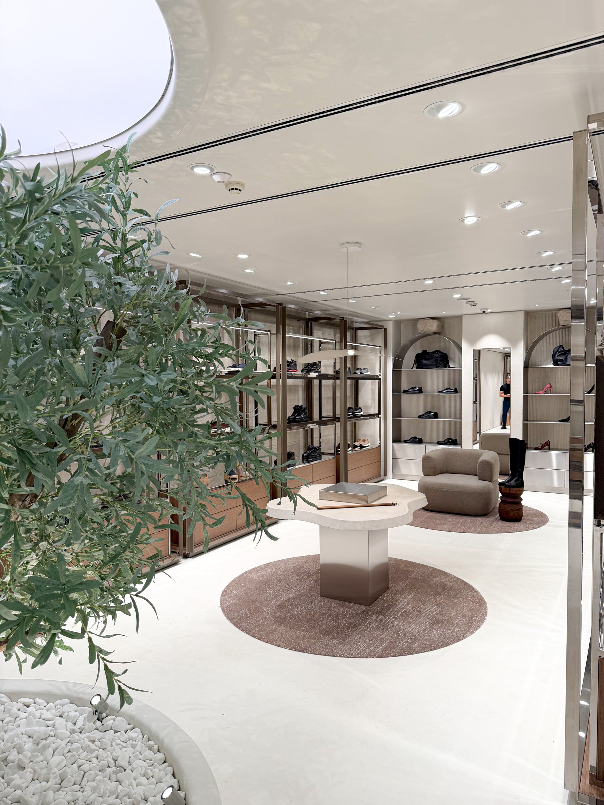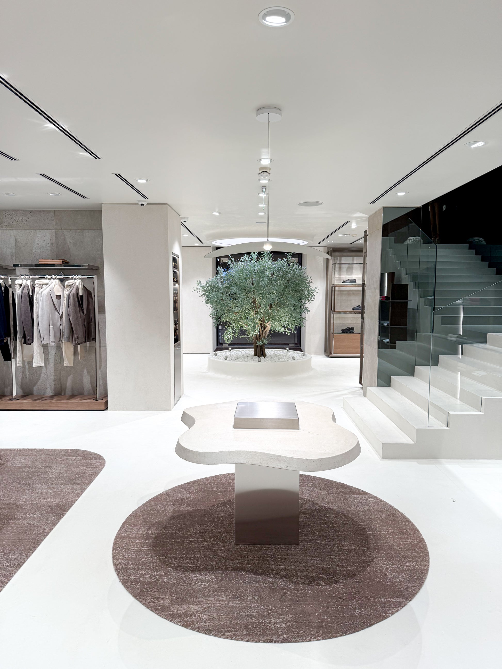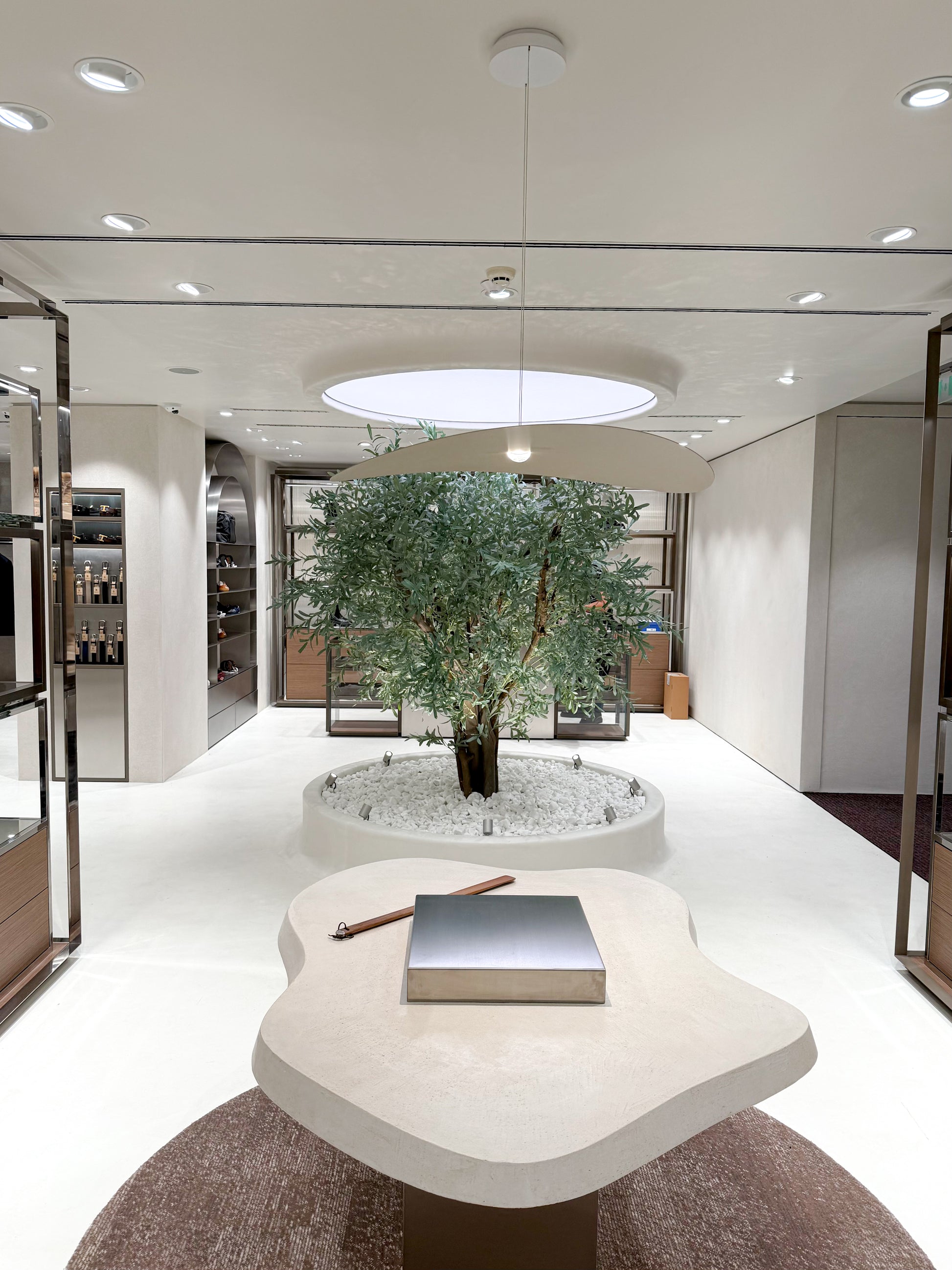 Органичните форми омекотяват строгите линии, а внимателно премереното осветление подчертава текстурите и характерните детайли. Така интериорът разкрива пространство, което е едновременно съвременно, балансирано и близко до природата – атмосфера, в която материалите говорят сами и допринасят за цялостното преживяване.